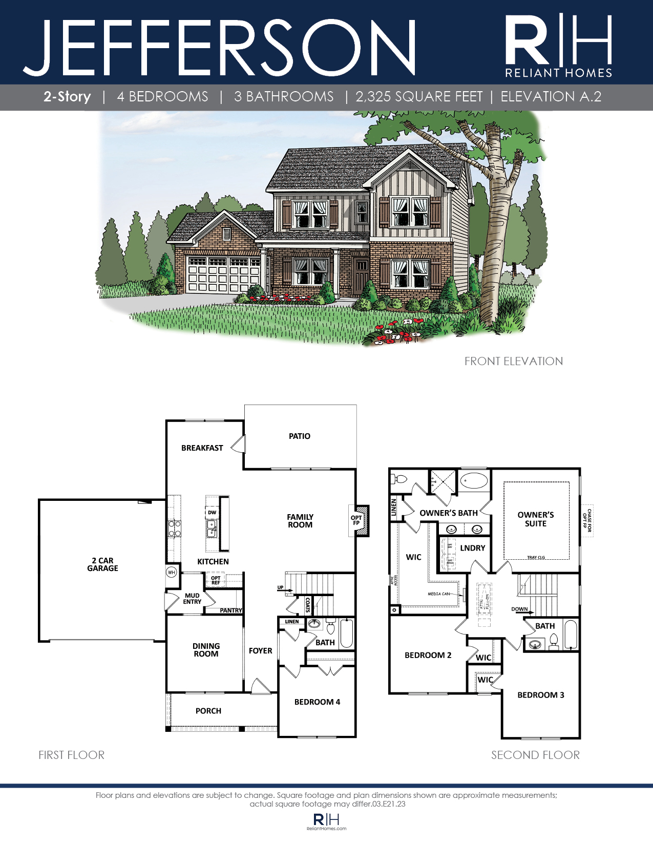 Unique 4 bedroom / 3 bath home with formal dining room, study and guest room on the main level. The open kitchen with large serving bar, breakfast area and family room with optional fireplace are perfect for entertaining. Walk-in pantry, mud room and entry foyer are additional features on the main level. The Owner’s retreat is located upstairs and boasts a trey ceiling, double vanity bath, separate shower and garden tub plus a generous walk-in closet. There are 2 additional bedrooms upstairs, both with walk-in closets.