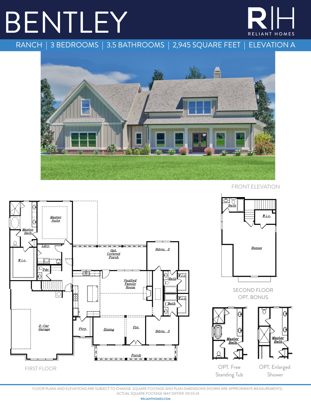 The Bentley plan blends comfort and functionality. This open-concept floor plan features a spacious family room that flows seamlessly into the kitchen, creating the perfect space for entertaining and everyday living. A large dining room offers plenty of space for hosting family gatherings and holiday meals. The main level includes a luxurious master suite with a generous walk-in closet, along with two additional bedrooms and two full bathrooms. Upstairs, you'll find a fourth bedroom with it's own bathroom — ideal for guests or a teen suite. The Bentley combines practical living with elegant touches, making it a perfect fit for families of all sizes.