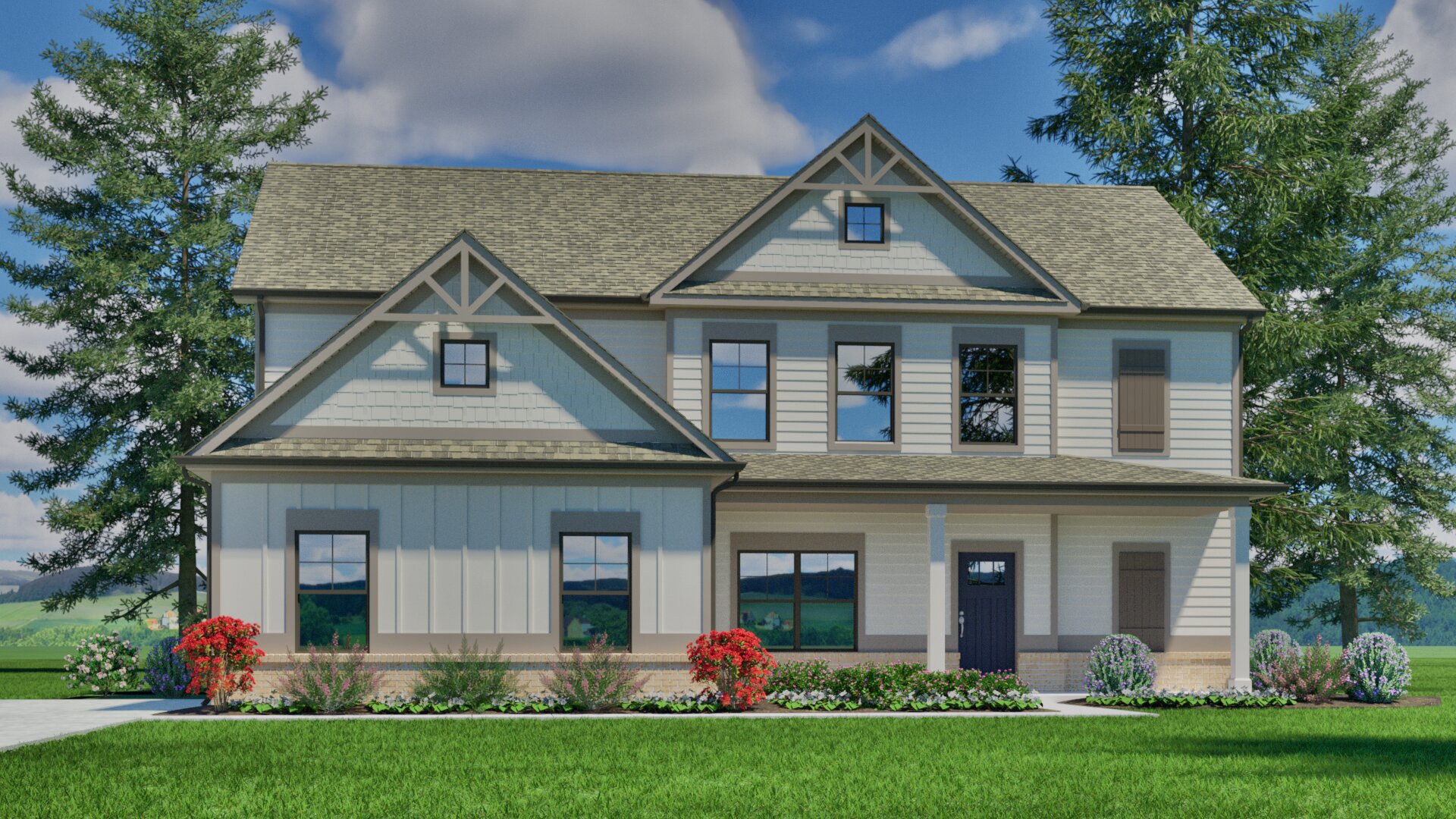 A distinctive 4 bedroom home with a formal dining room and Guest suite on the main level. The grand 2-story family room has an optional fireplace and is open to the kitchen and breakfast. Add the keeping room for an extra gathering space on the main level! Upstairs the Owner’s suite features a tray ceiling, double vanity bath with separate tub and shower and large walk-in closet. This home comes with 2 additional bedrooms upstairs and a full bath.
