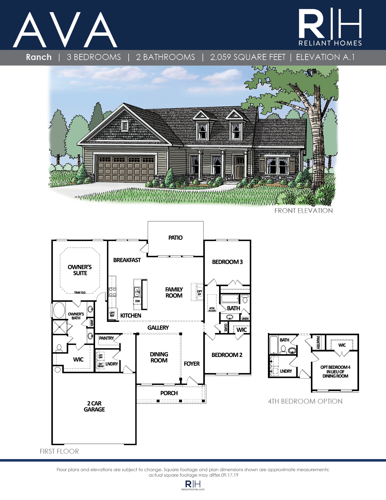 This plan’s open concept makes it the perfect choice for your new home. The split bedroom layout creates privacy in the Owner’s suite which features double vanities, separate tub and shower, plus a generous walk-in closet. The kitchen with a large serving bar, and breakfast are open to the family room which has an option for a fireplace. A large laundry and walk-in pantry are convenient to the kitchen and the garage entry. 2 additional bedrooms and a full bath are located on the main level.