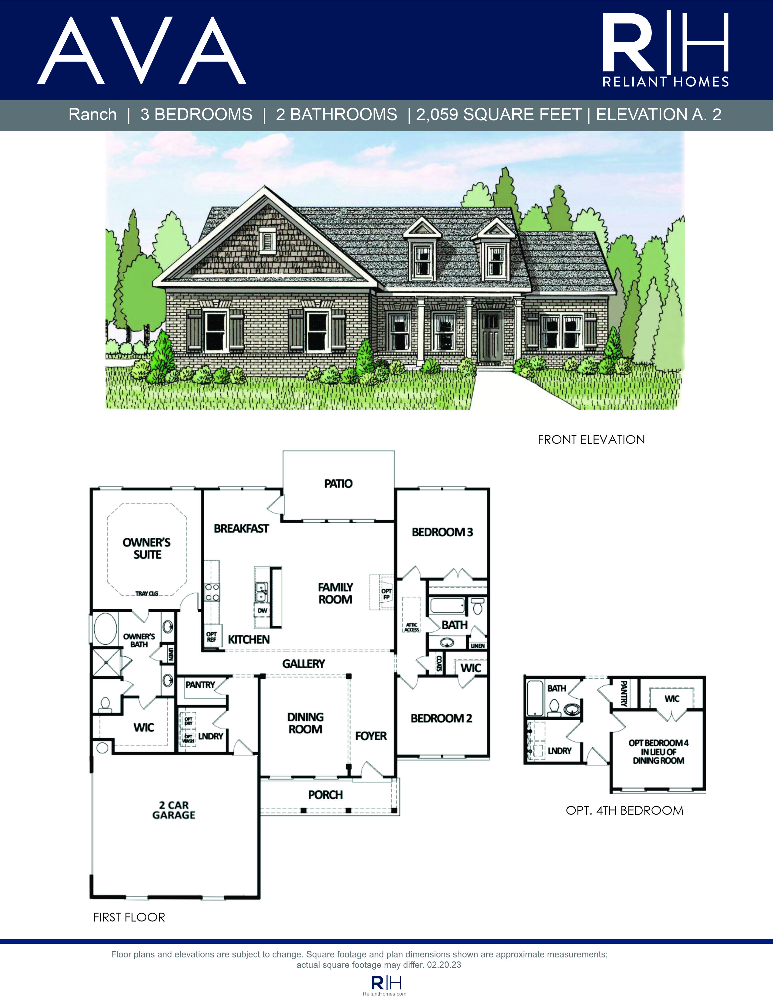 This plan’s open concept makes it the perfect choice for your new home. The split bedroom layout creates privacy in the Owner’s suite which features double vanities, separate tub and shower, plus a generous walk-in closet. The kitchen with a large serving bar, and breakfast are open to the family room which has an option for a fireplace. A large laundry and walk-in pantry are convenient to the kitchen and the garage entry. 2 additional bedrooms and a full bath are located on the main level.
