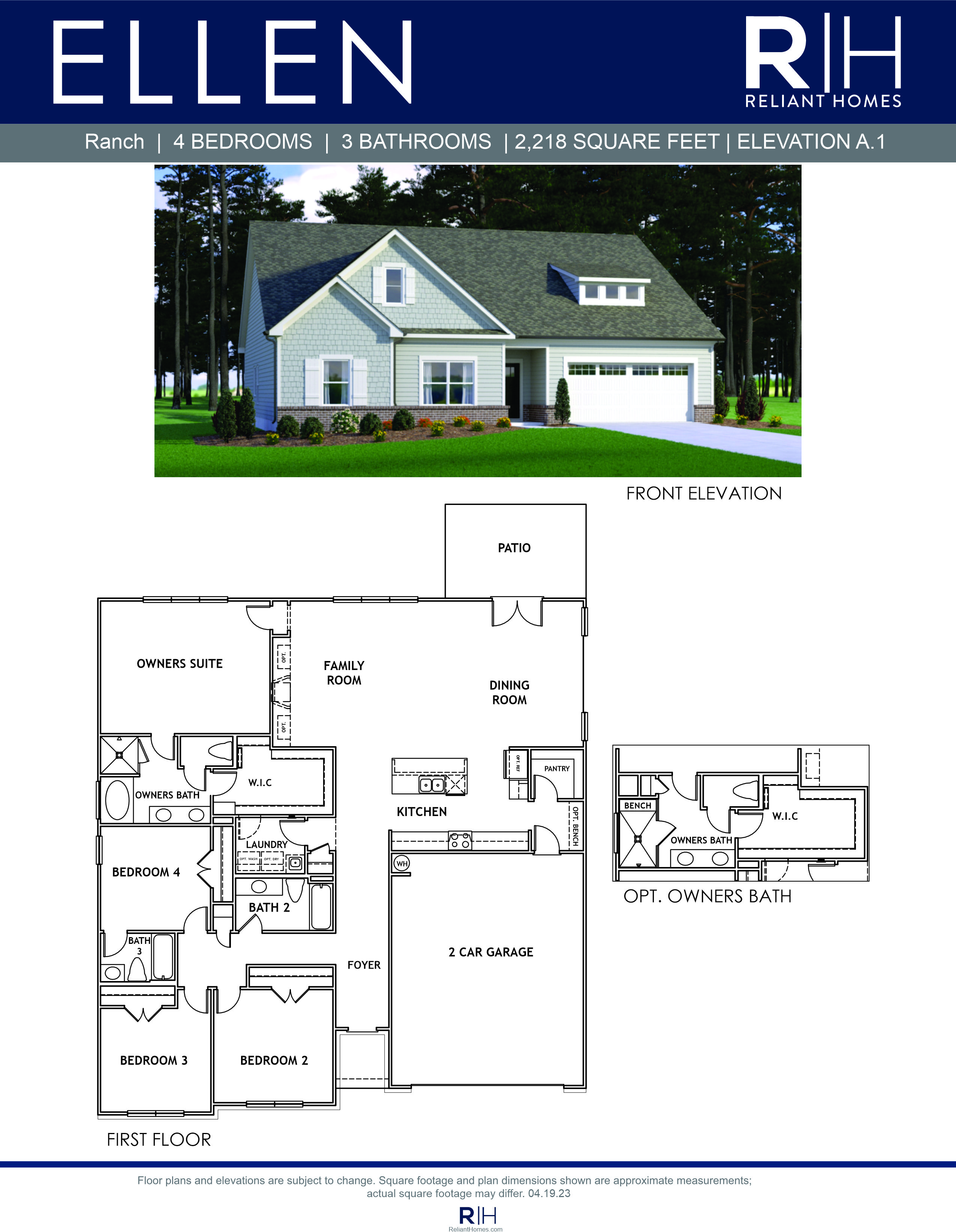 Exceptional ranch home with a 4 bedroom design that features a guest room with full bath plus 2 additional bedrooms and bath. The Owner’s retreat is privately situated in the rear of the home with a double vanity, separate tub and shower and walk-in closet. The generous family room opens to the kitchen and dining room with lots of windows, open serving bar, and pantry. This plan offers the option of a family room fireplace and mud bench!