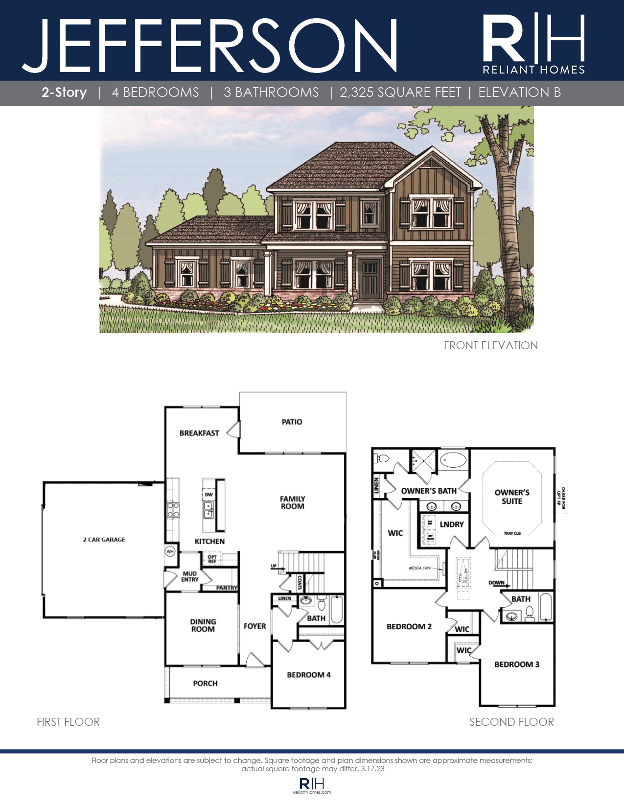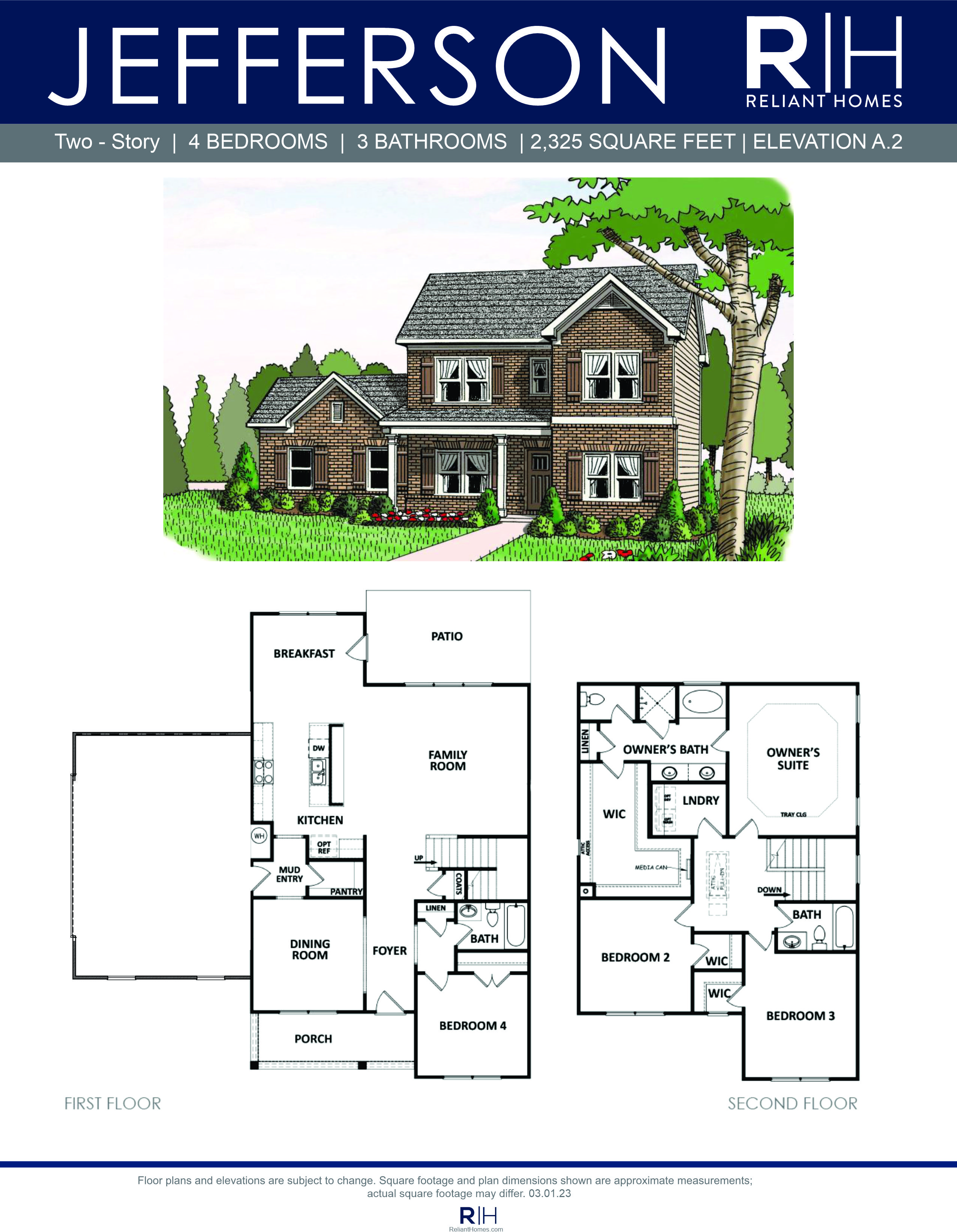 Unique 4 bedroom / 3 bath home with formal dining room, study and guest room on the main level. The open kitchen with large serving bar, breakfast area and family room with optional fireplace are perfect for entertaining. Walk-in pantry, mud room and entry foyer are additional features on the main level. The Owner’s retreat is located upstairs and boasts a trey ceiling, double vanity bath, separate shower and garden tub plus a generous walk-in closet. There are 2 additional bedrooms upstairs, both with walk-in closets.