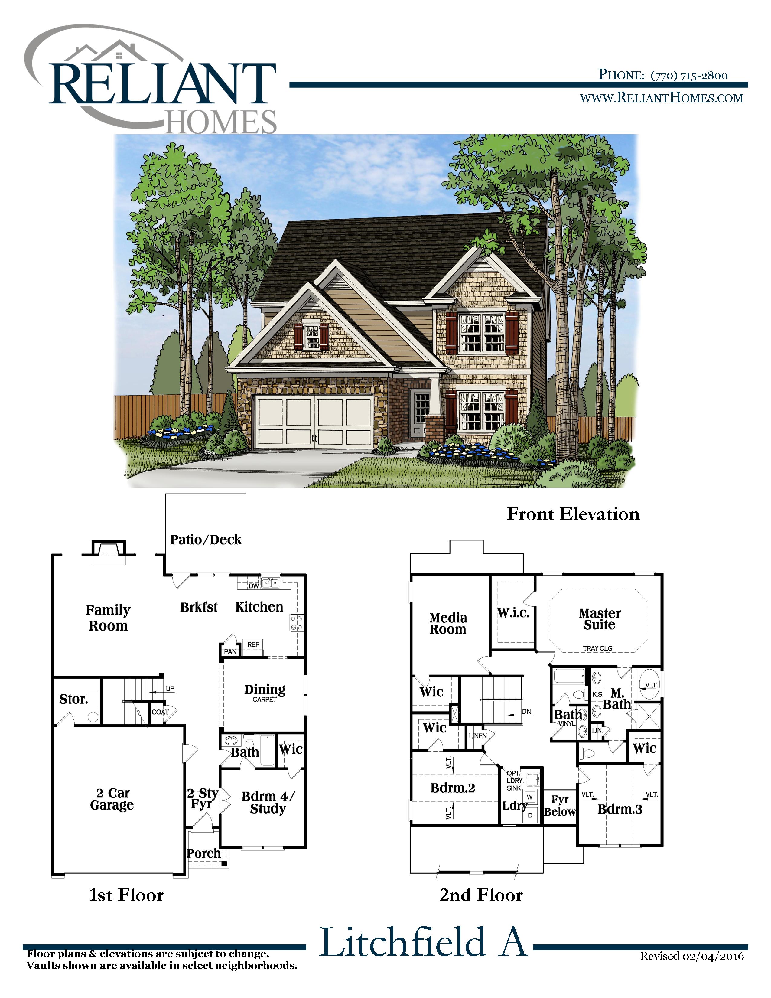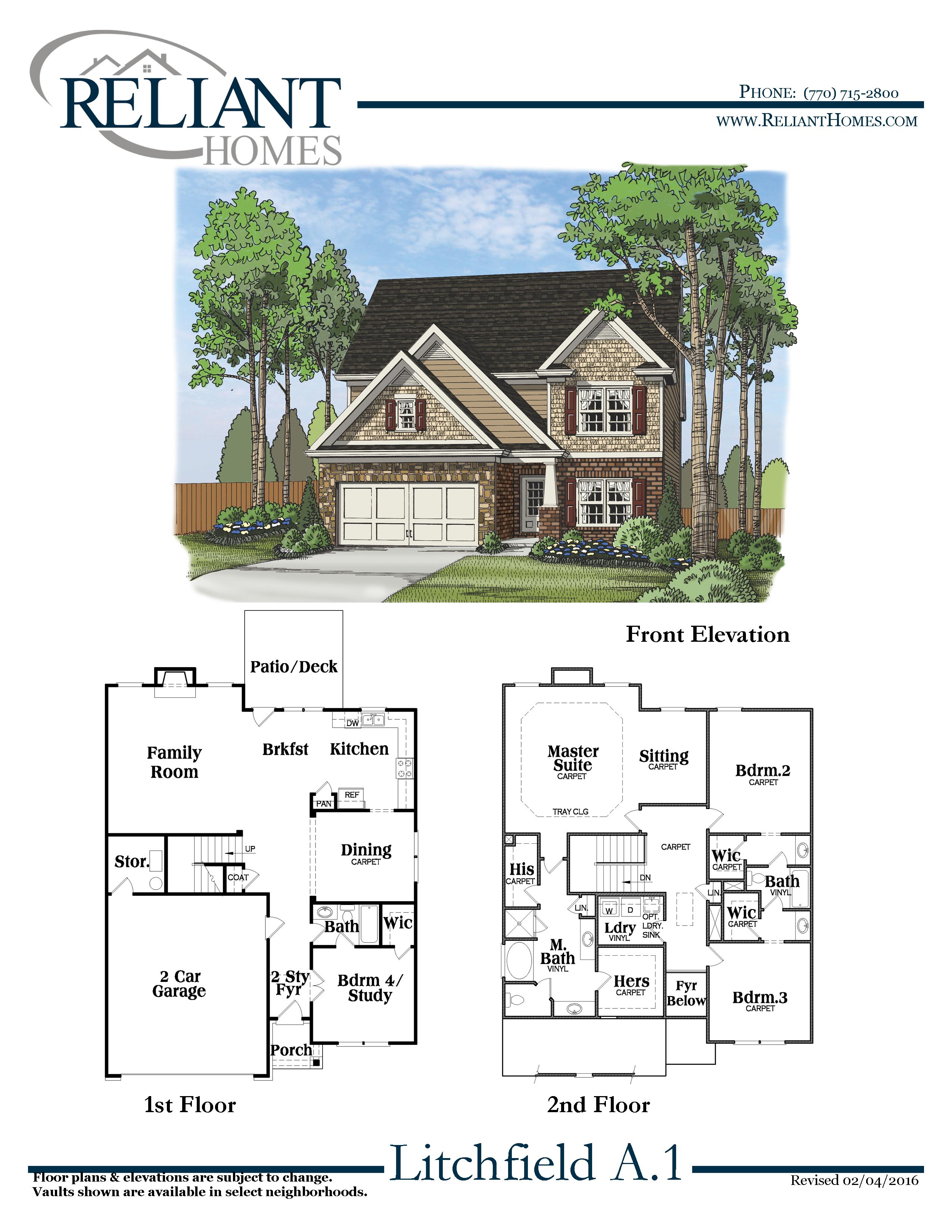 This two-story floor plan is perfect for those who enjoy comfort and style. The main level includes an open kitchen with separate breakfast area leading into the large family room. The separate dining room is adjacent to the kitchen for easy access. A bonus room, which can be used as a study or guest bedroom is also on the main floor. Upstairs, the master suite with a relaxing sitting room connects to the master bath, which includes separate his/her walk-in closets. The two additional bedrooms upstairs are joined by a Jack-and-Jill style bathroom.