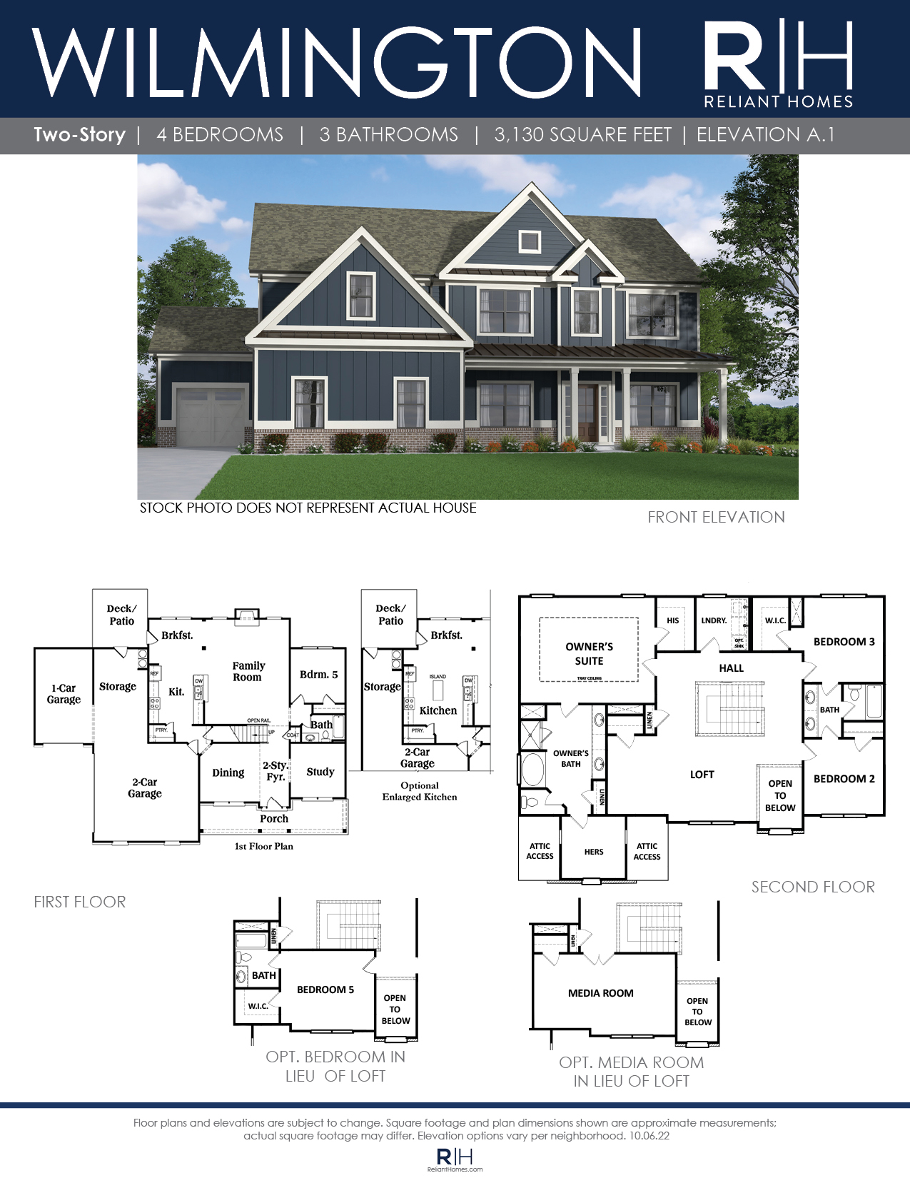 This spacious, two-story floor plan has a large family room, kitchen with breakfast area, and a separate dining room. On the main level, the home offers a guest bedroom and full bath. The upper level has the option of a sixth bedroom or media room/sitting room.