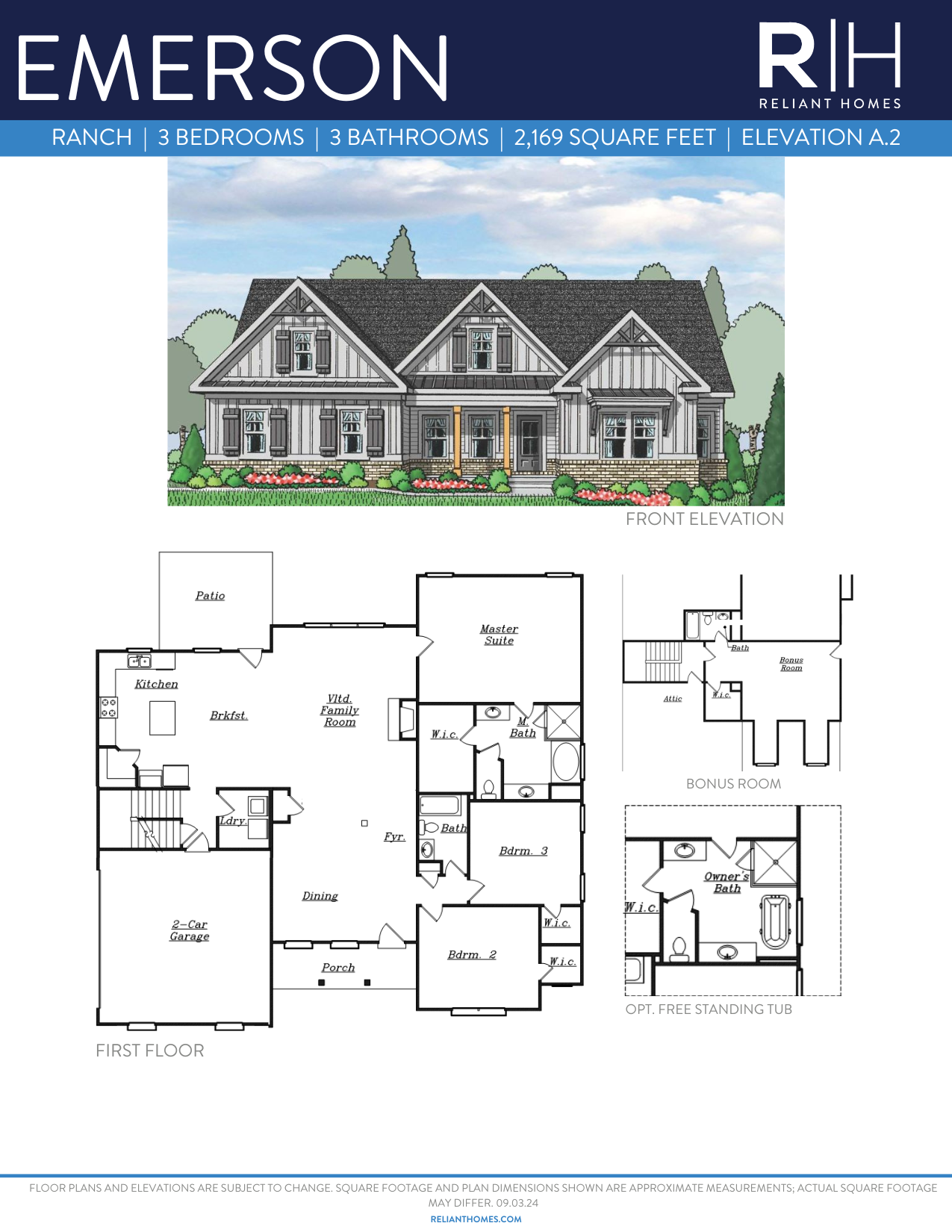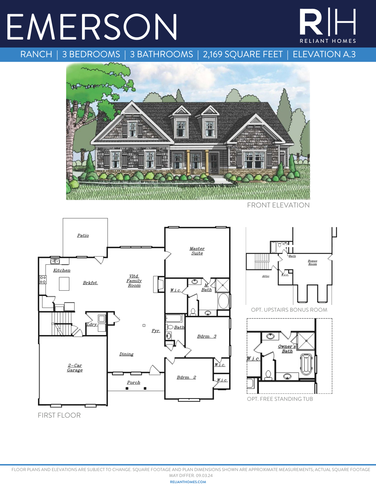 4 Bedroom 3 Bath Ranch Home. This Plan Offers A Spacious Open Ranch Home With A Bonus Room. Vaulted Ceiling In The Family Room With Fireplace. Optional Keeping Room With Vaulted Ceiling. The Foyer Entrance Opens With A Separate Dining Room. Owner And Secondary Bedroom 2 And 3 On The Main With Full Bath. Bonus Room Offers Walk-In Closet And Full Bath. Owner Bedroom Offers Double Vanity And A Large Walk-In Closet. Laundry On The Main.