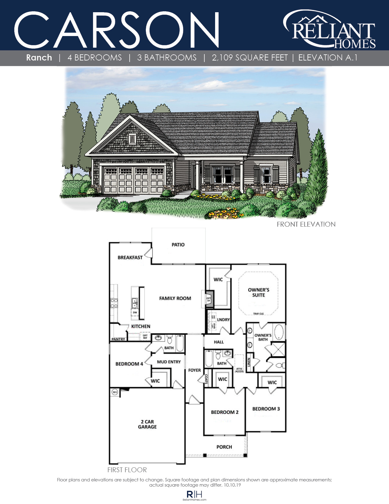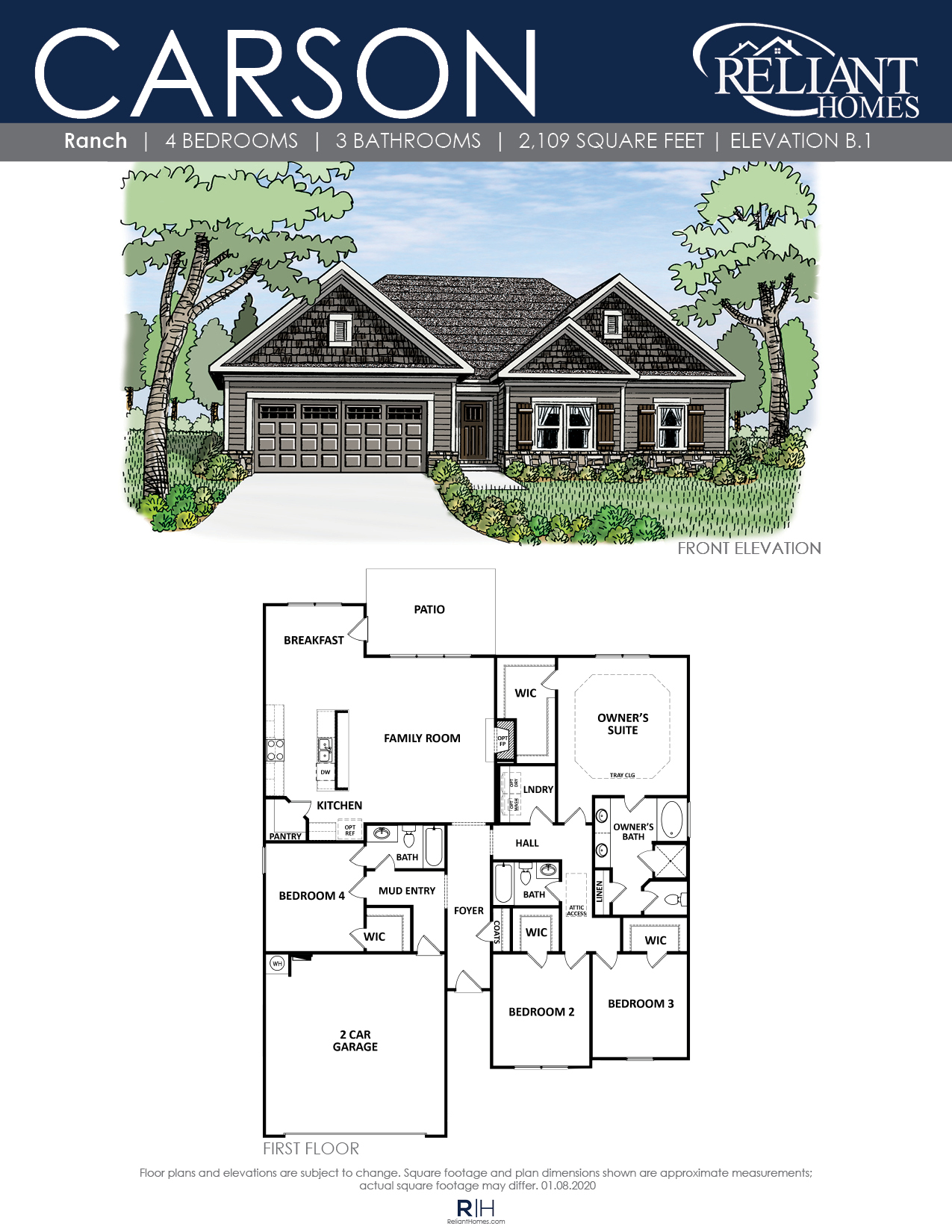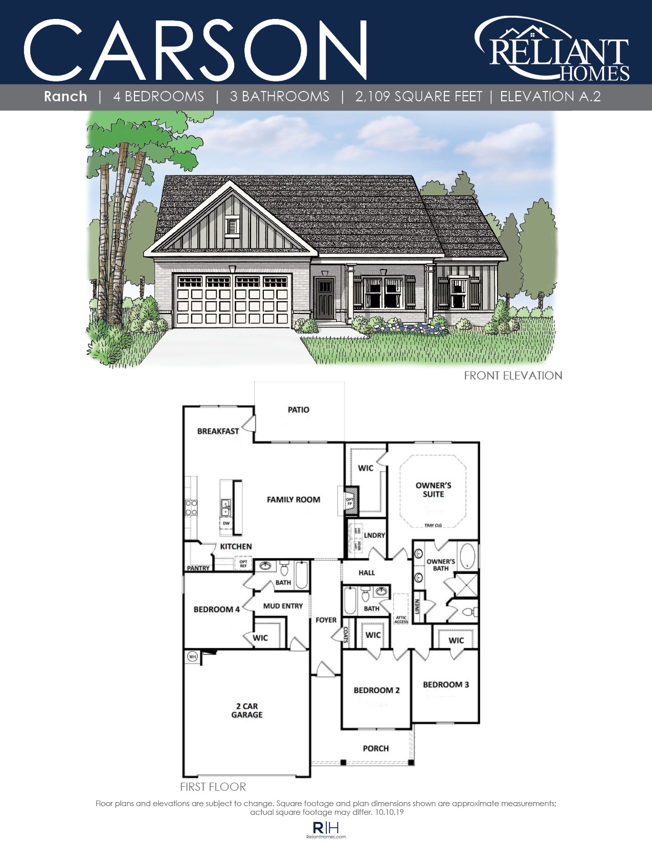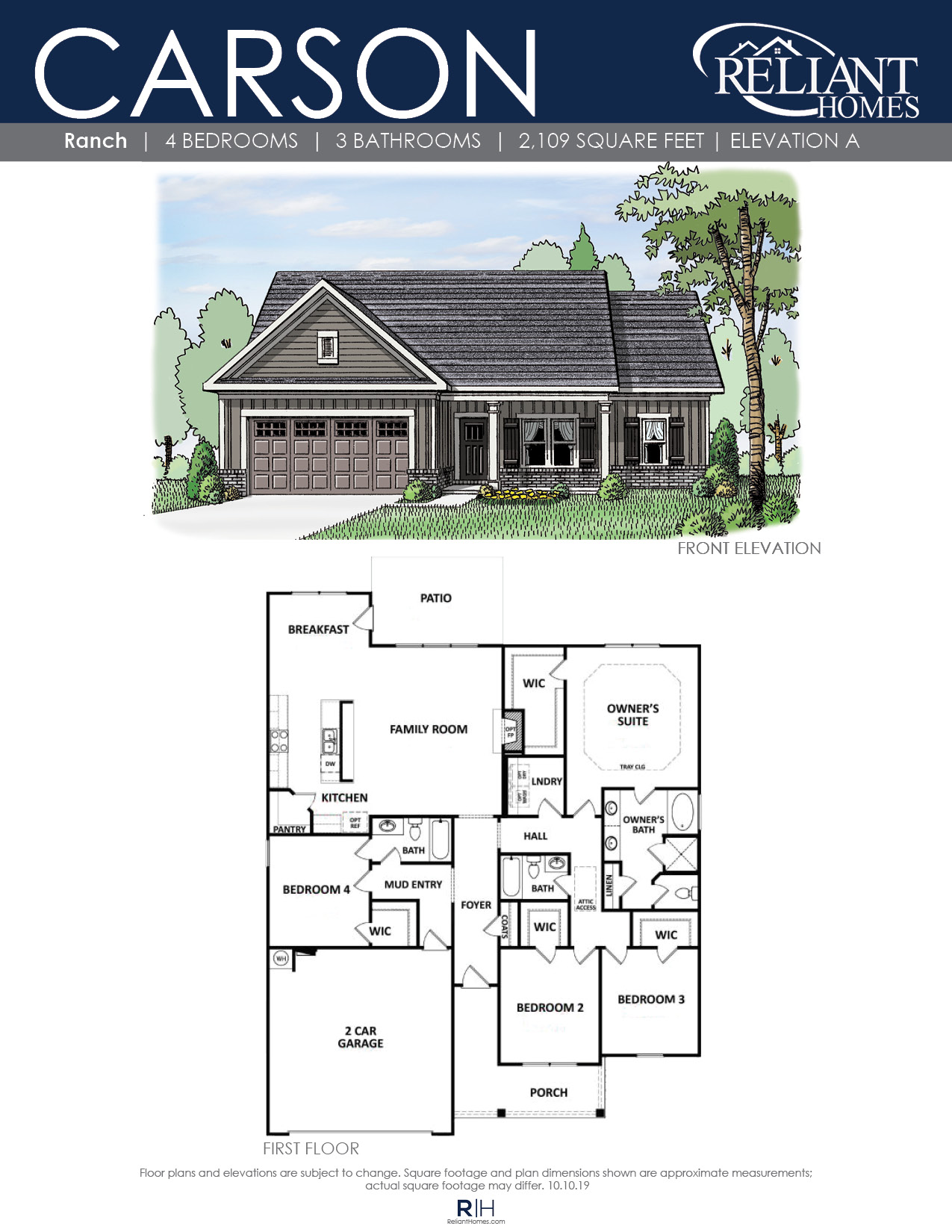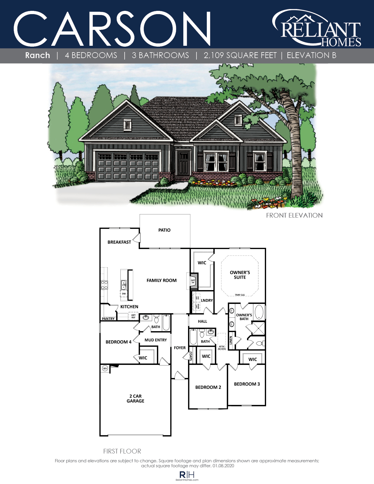 Exceptional ranch home with a 4 bedroom design that features a guest room with full bath plus 2 additional bedrooms and bath on the main level. The Owner’s retreat is privately situated in the rear of the home with a double vanity, separate tub and shower and walk-in closet. The generous family room opens to the kitchen and breakfast with lots of windows, open serving bar, and pantry. This plan offers the option of a family room fireplace and mud bench!