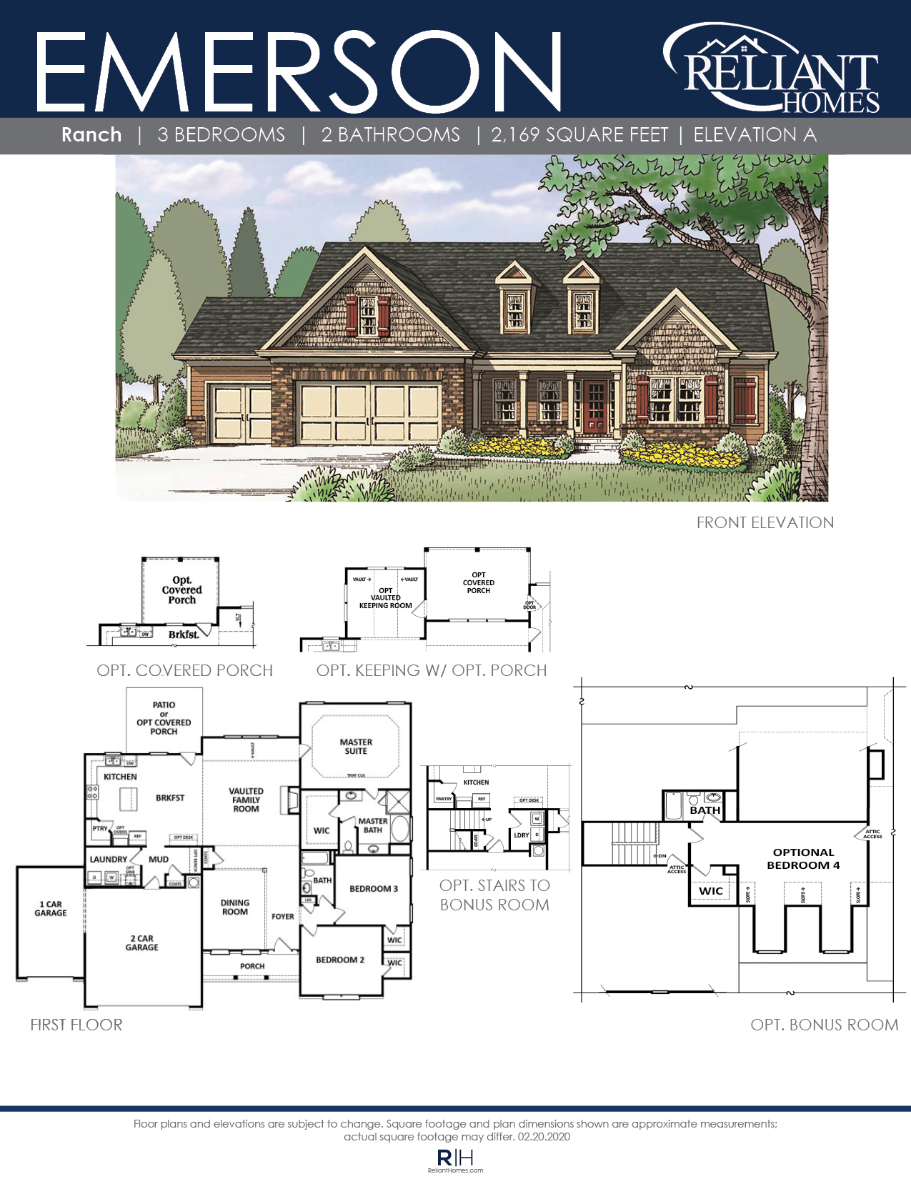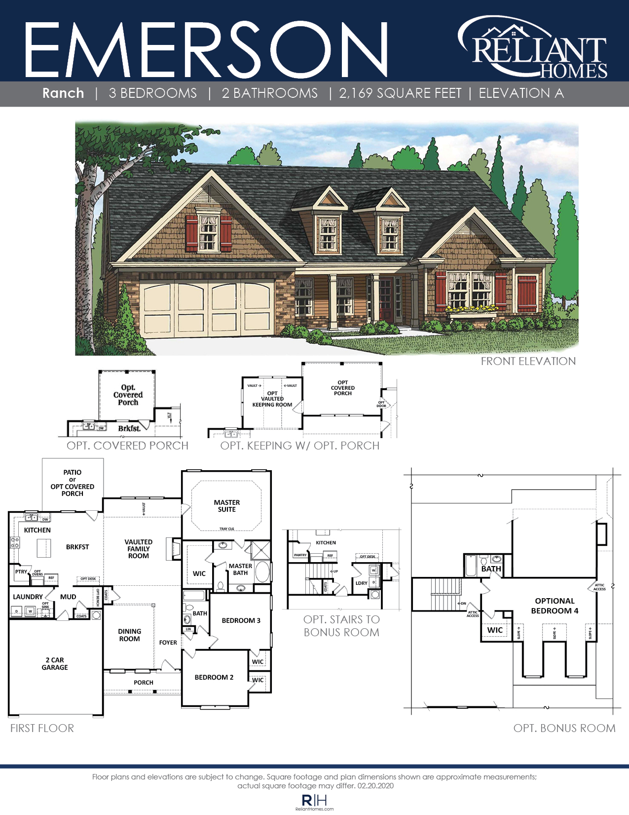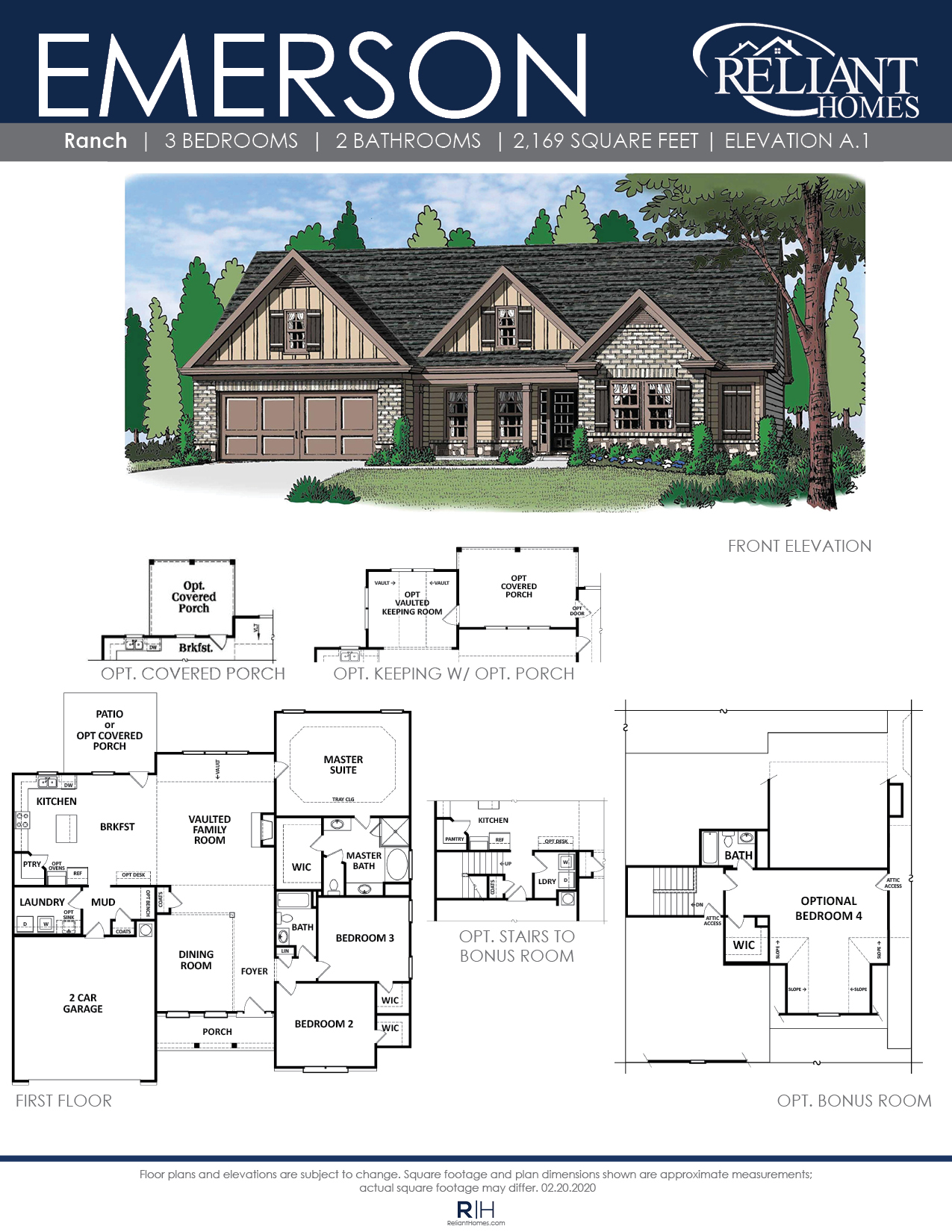 4 Bedroom 3 Bath Ranch Home. This Plan Offers A Spacious Open Ranch Home With A Bonus Room. Vaulted Ceiling In The Family Room With Fireplace. Optional Keeping Room With Vaulted Ceiling. The Foyer Entrance Opens With A Separate Dining Room. Owner And Secondary Bedroom 2 And 3 On The Main With Full Bath. Bonus Room Offers Walk-In Closet And Full Bath. Owner Bedroom Offers Double Vanity And A Large Walk-In Closet. Laundry On The Main.